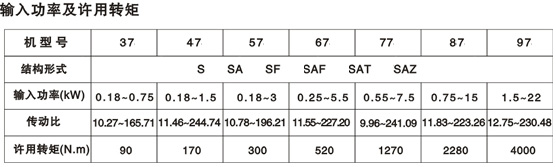 输出转速(1/min):0.1-522 输出转矩(Nm):高至40000 电机功率范围(Kw):0.12-250